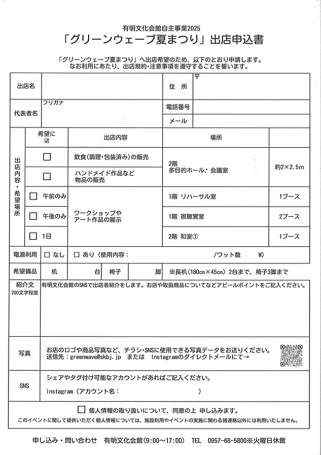 申込用紙またはEメール・InstagramのDMにてお申し込みください。
