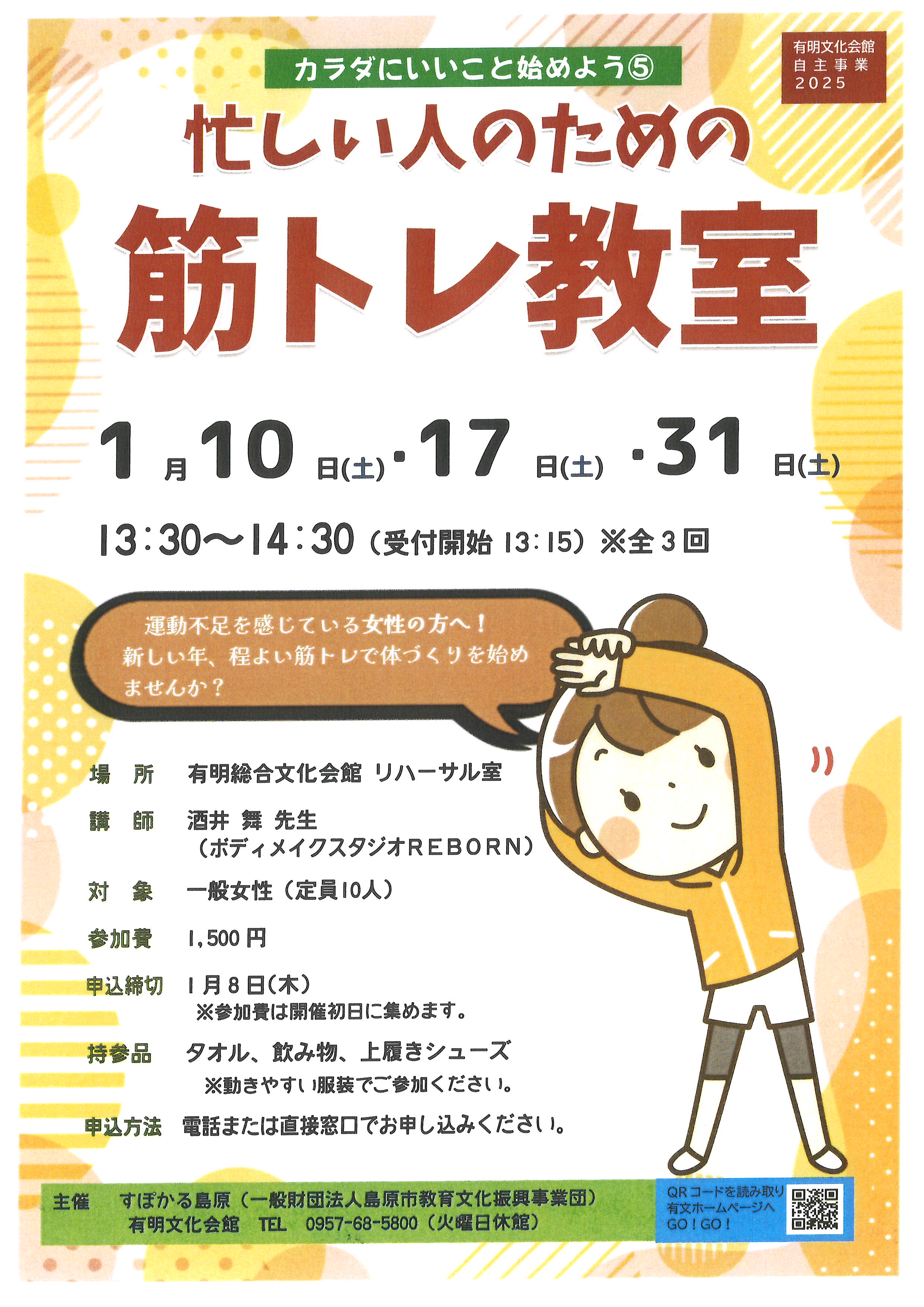 カラダにいいこと始めよう⑤「忙しい人のための筋トレ教室(女性向け)」参加者募集!
