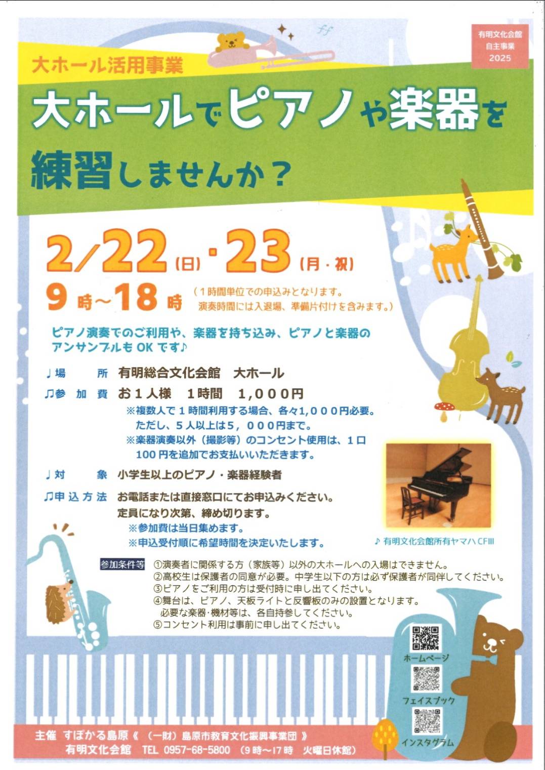 問い合わせ・申し込み 有明文化会館 ℡0957-68-5800※火曜日休館